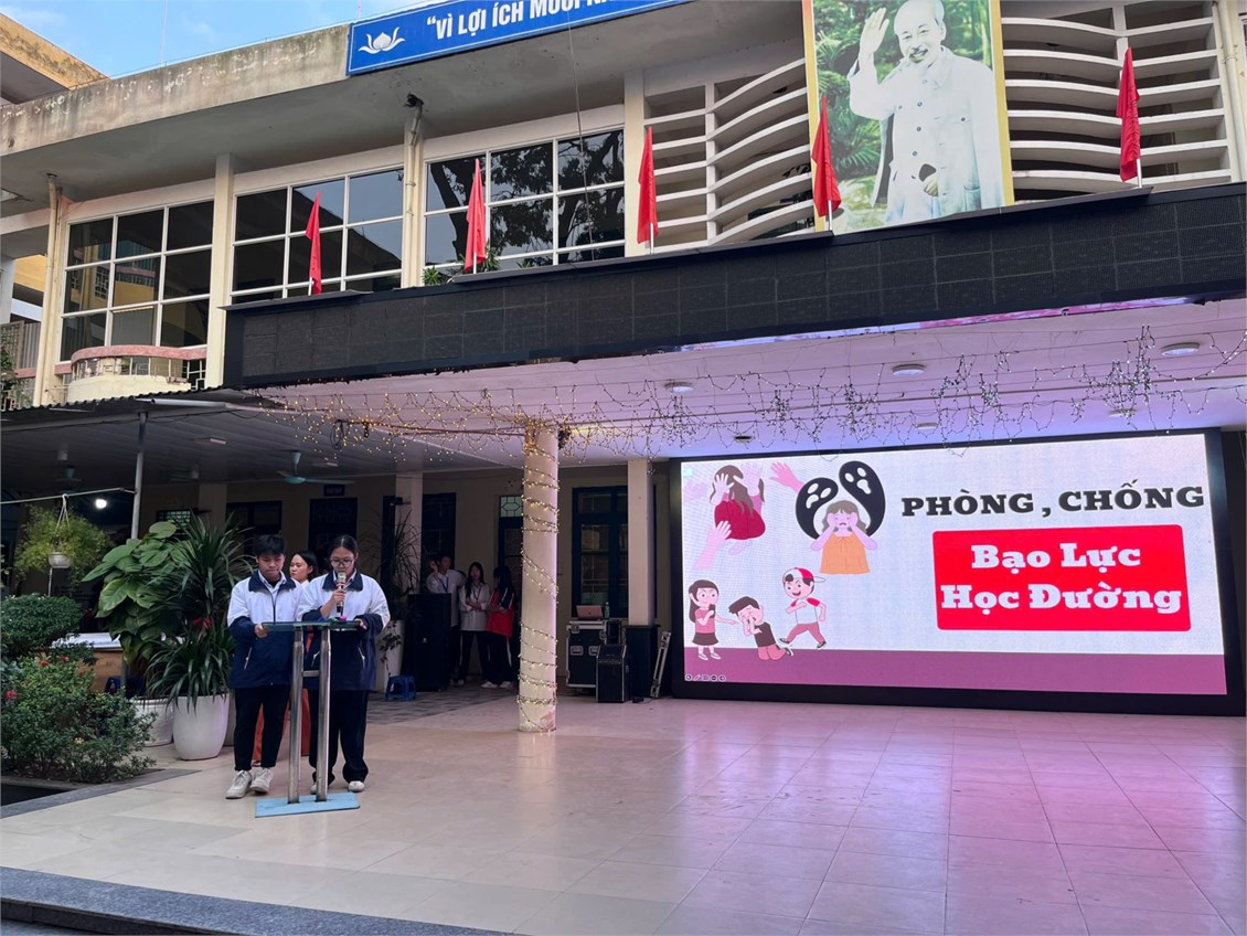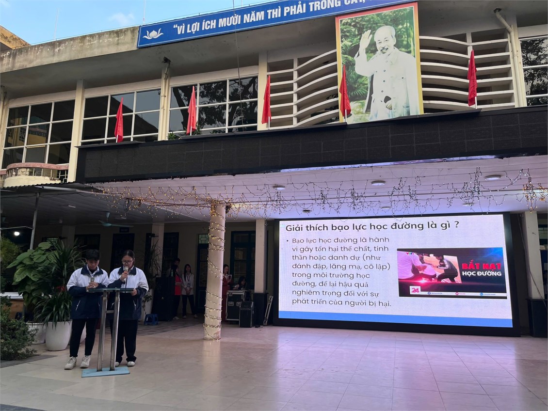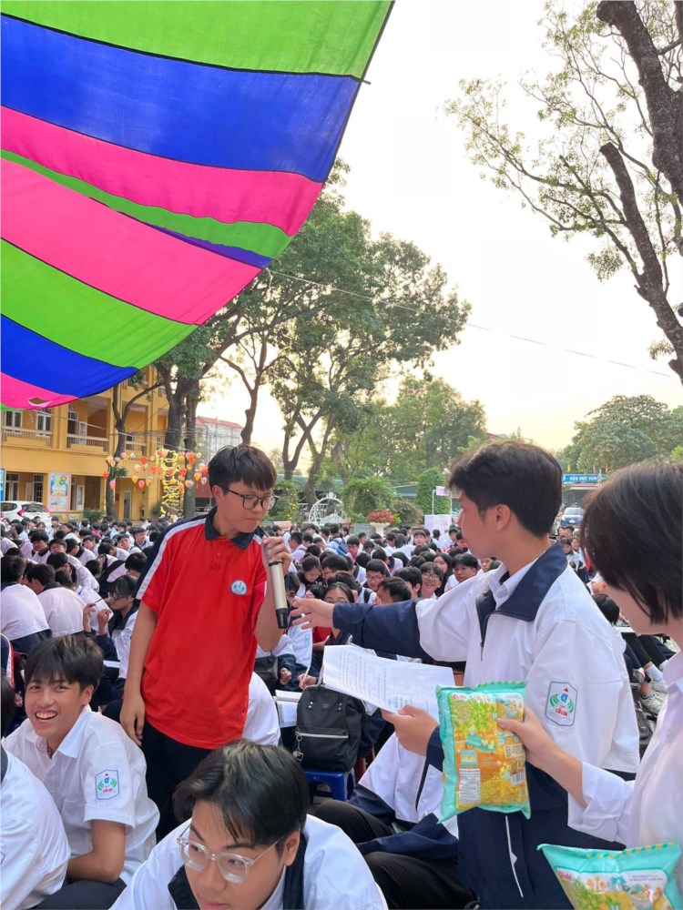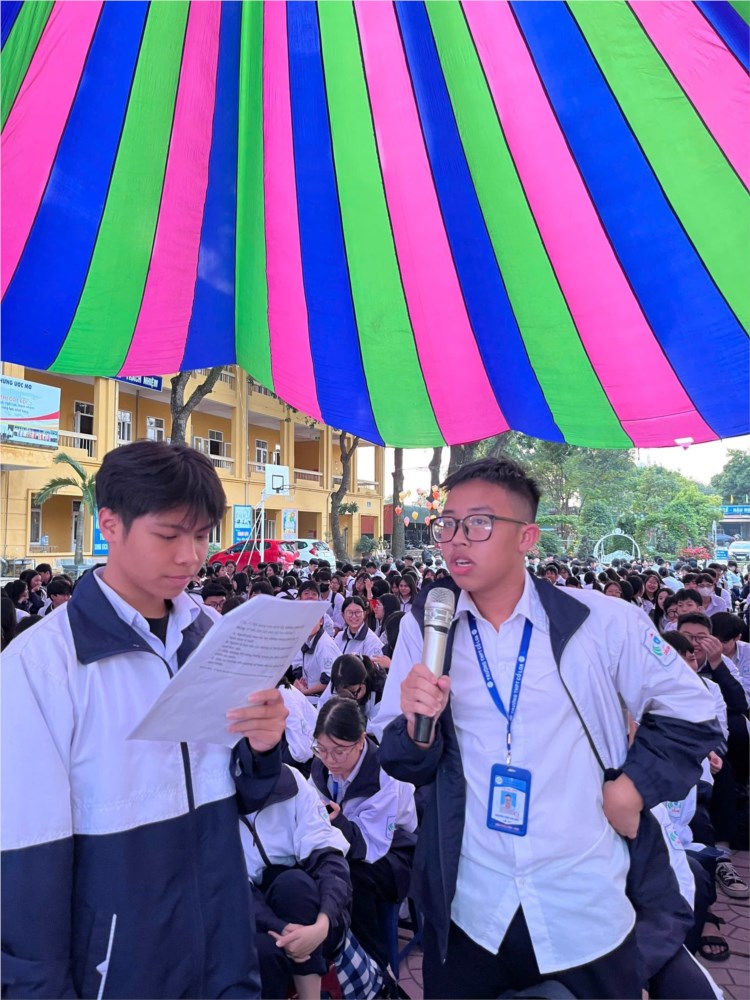 Bên cạnh đó, nội dung tuyên truyền của Chi đoàn 10A7 về “Bạo lực học đường” được triển khai sinh động thông qua tiểu phẩm, và những chia sẻ thiết thực, giúp học sinh hiểu rõ hơn về tác hại của bạo lực học đường, cách nhận biết và làm thế nào để có thể sống tích cực hơn tại môi trường học đường.