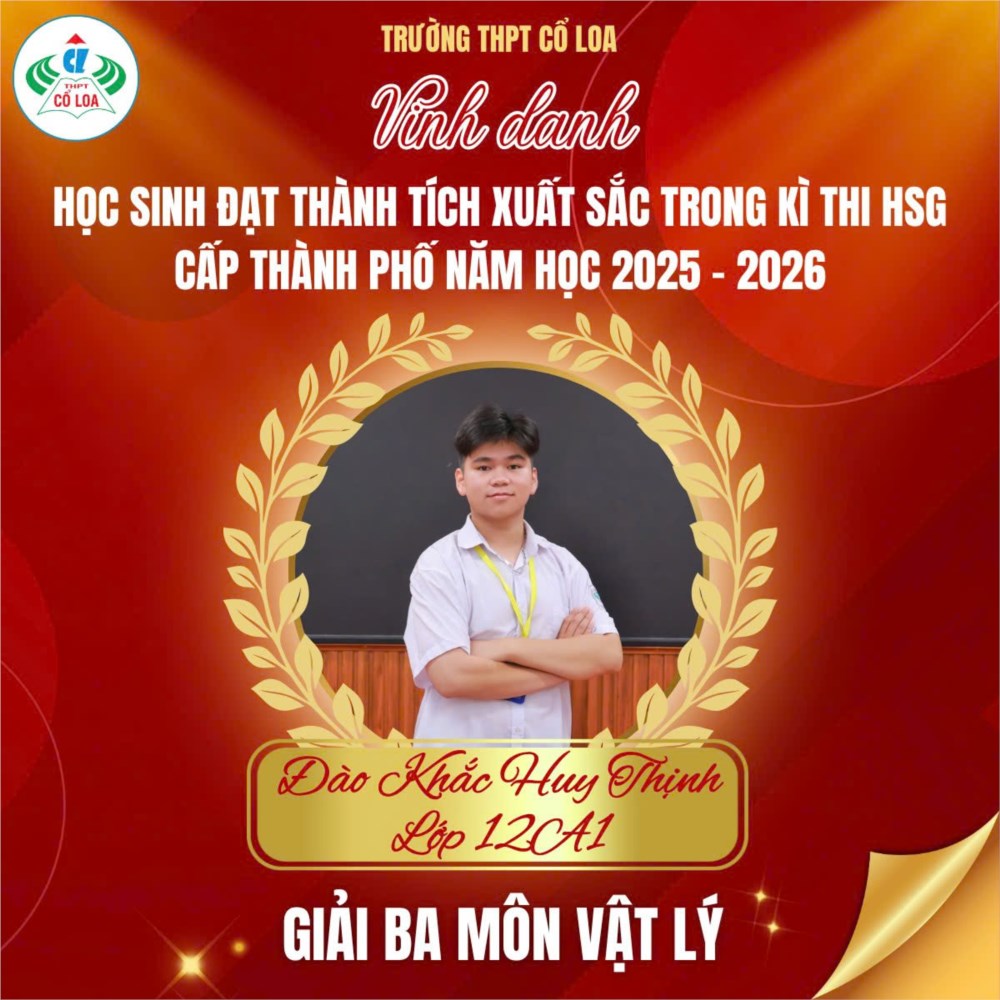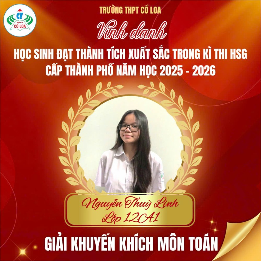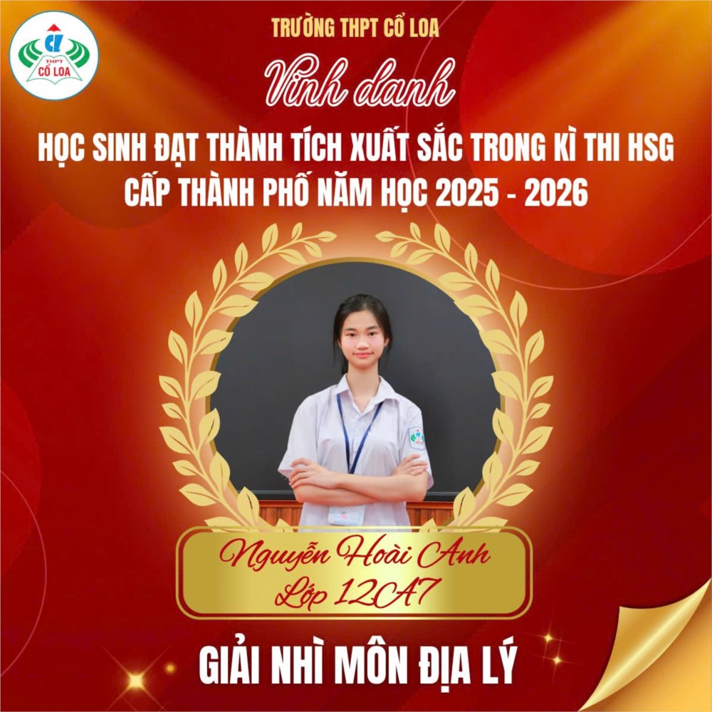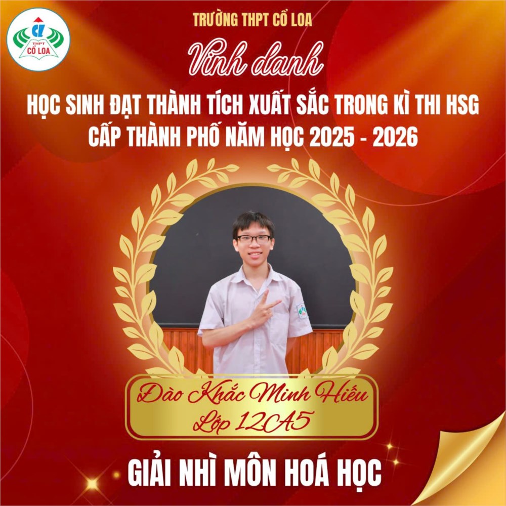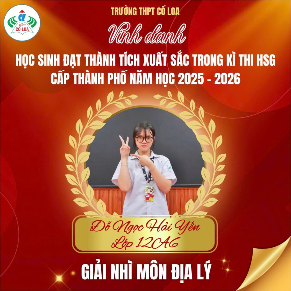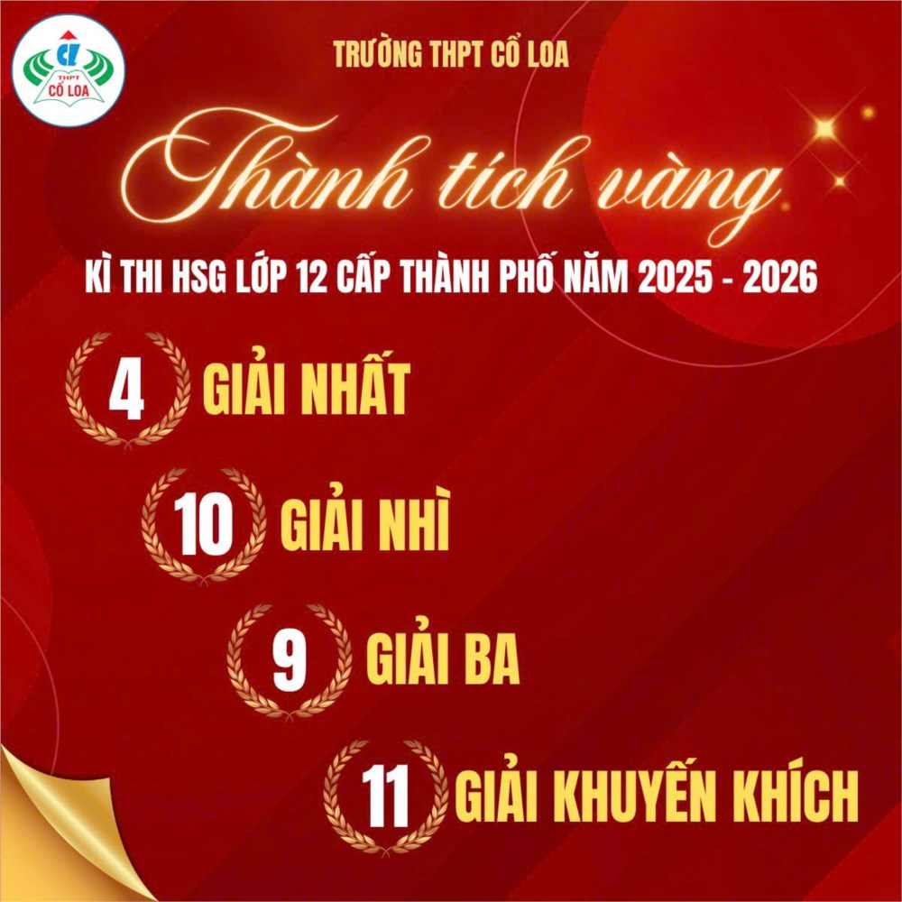 rong kỳ thi Học sinh giỏi cấp Thành phố năm học 2025-2026, Thầy và trò trường THPT Cổ Loa đã gặt hái được nhiều thành tích đáng tự hào, tiếp tục khẳng định vị thế của mình trong ngành giáo dục Thủ đô.