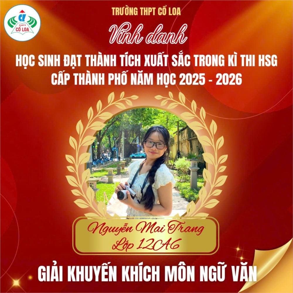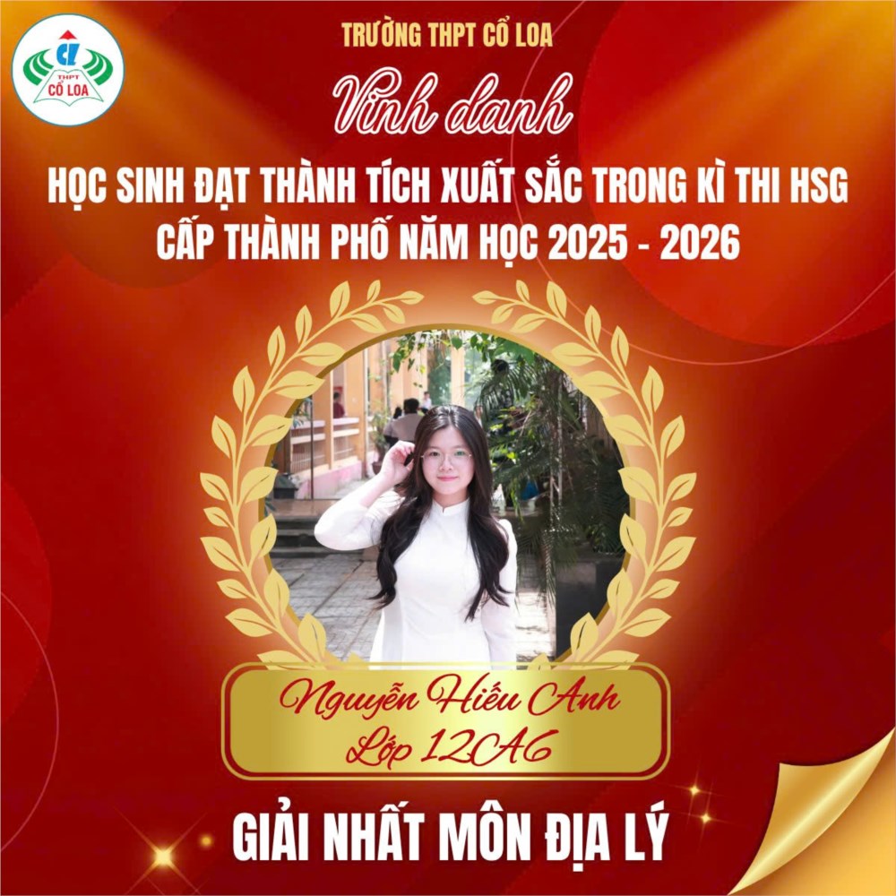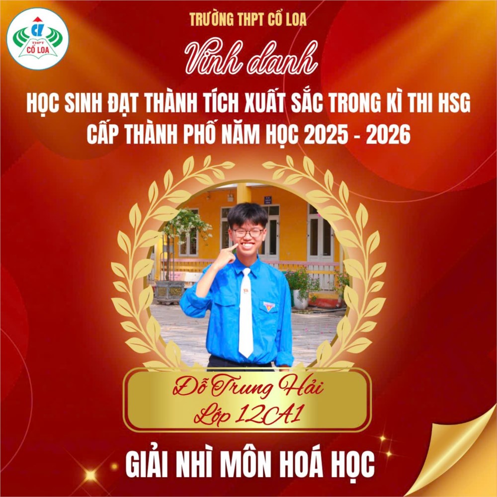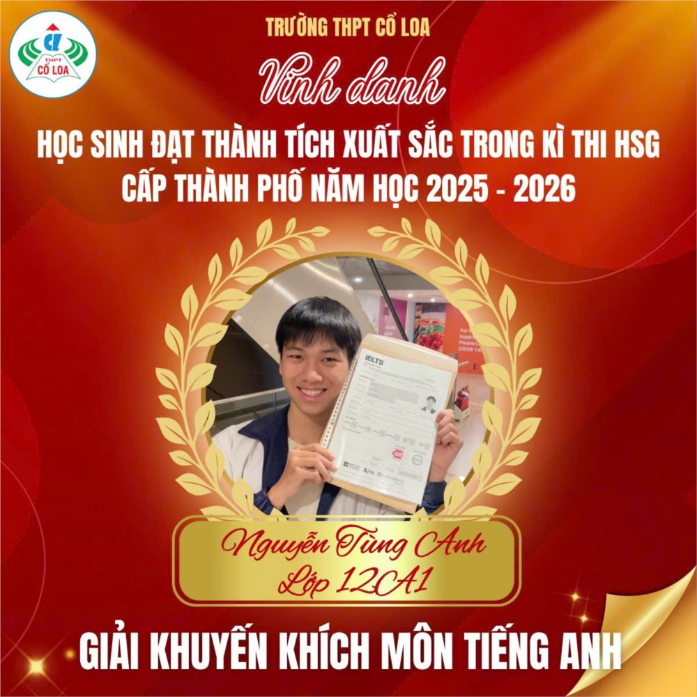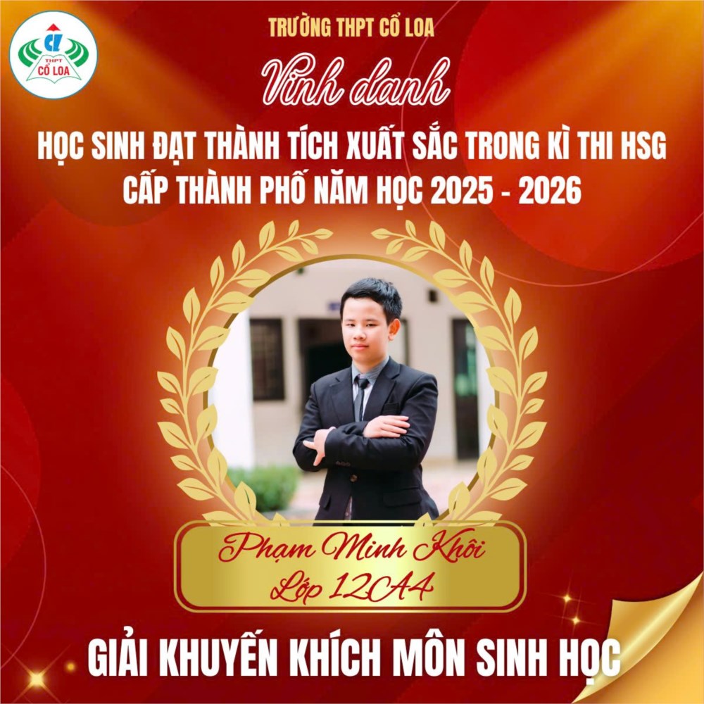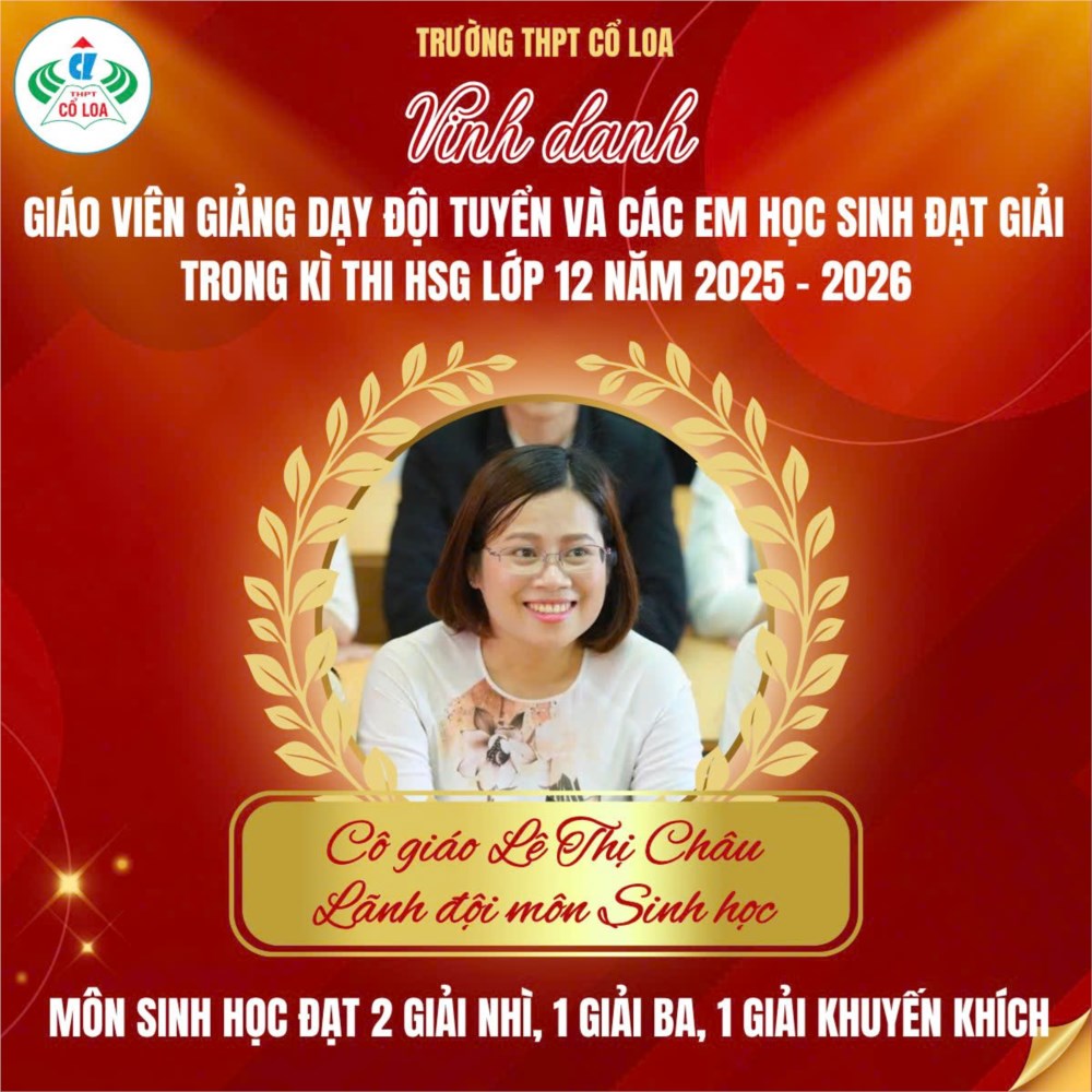 rong kỳ thi Học sinh giỏi cấp Thành phố năm học 2025-2026, Thầy và trò trường THPT Cổ Loa đã gặt hái được nhiều thành tích đáng tự hào, tiếp tục khẳng định vị thế của mình trong ngành giáo dục Thủ đô.