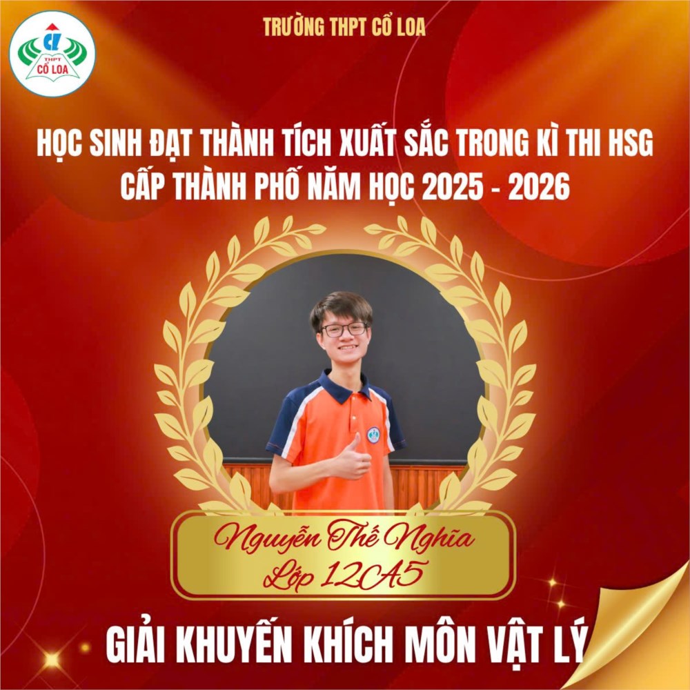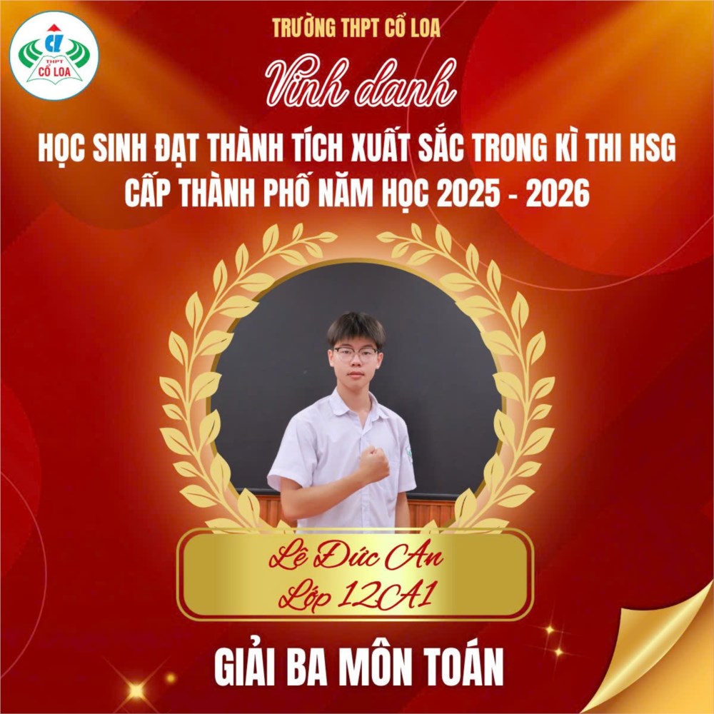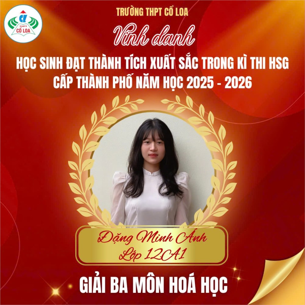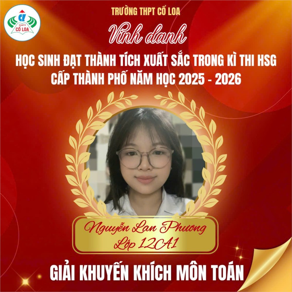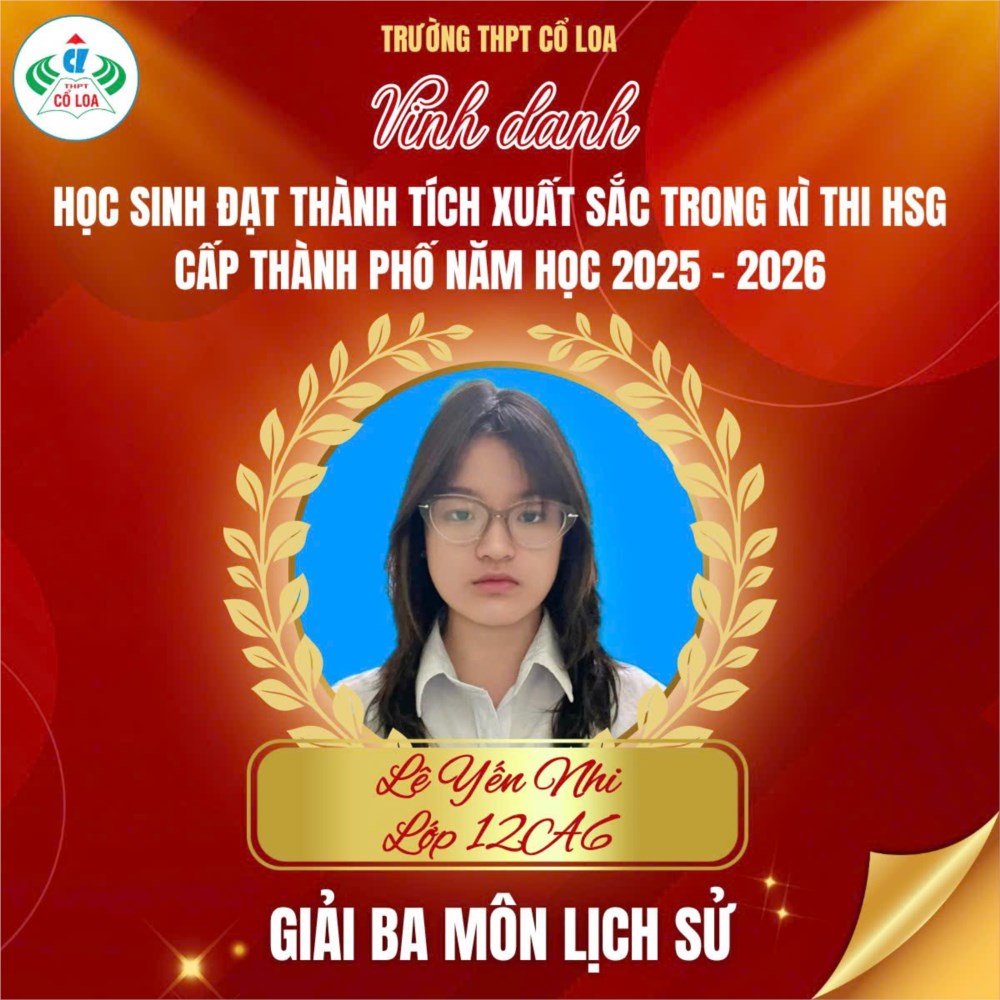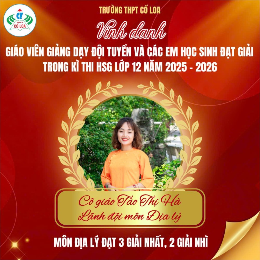 rong kỳ thi Học sinh giỏi cấp Thành phố năm học 2025-2026, Thầy và trò trường THPT Cổ Loa đã gặt hái được nhiều thành tích đáng tự hào, tiếp tục khẳng định vị thế của mình trong ngành giáo dục Thủ đô.