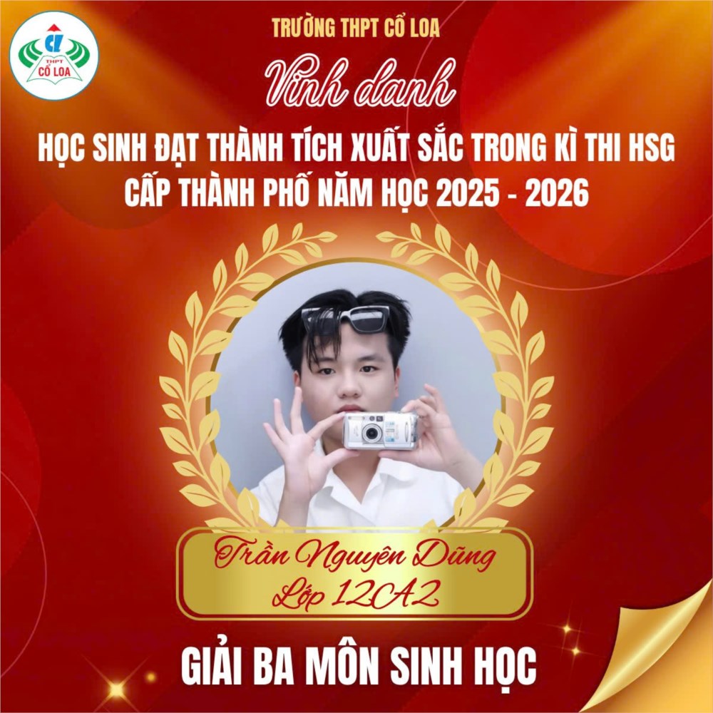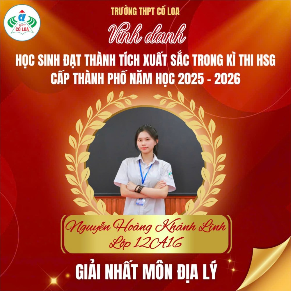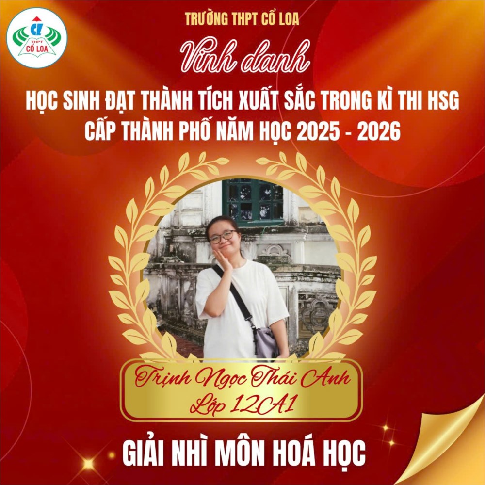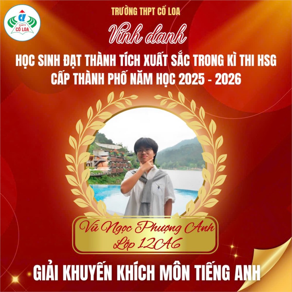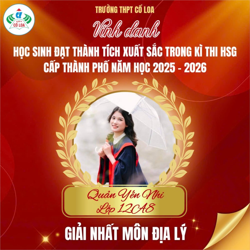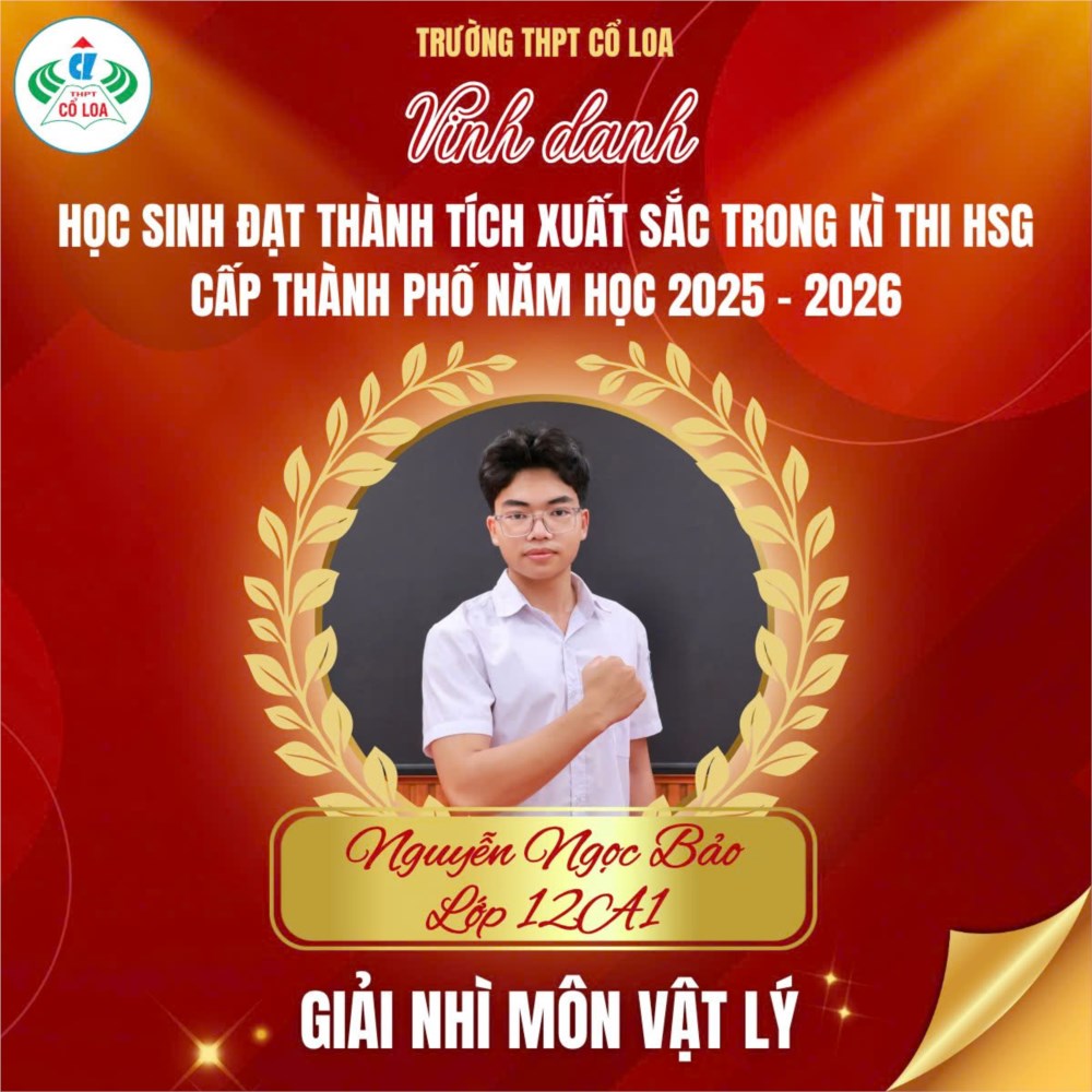 rong kỳ thi Học sinh giỏi cấp Thành phố năm học 2025-2026, Thầy và trò trường THPT Cổ Loa đã gặt hái được nhiều thành tích đáng tự hào, tiếp tục khẳng định vị thế của mình trong ngành giáo dục Thủ đô.