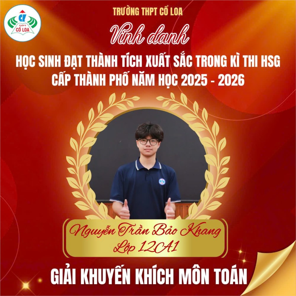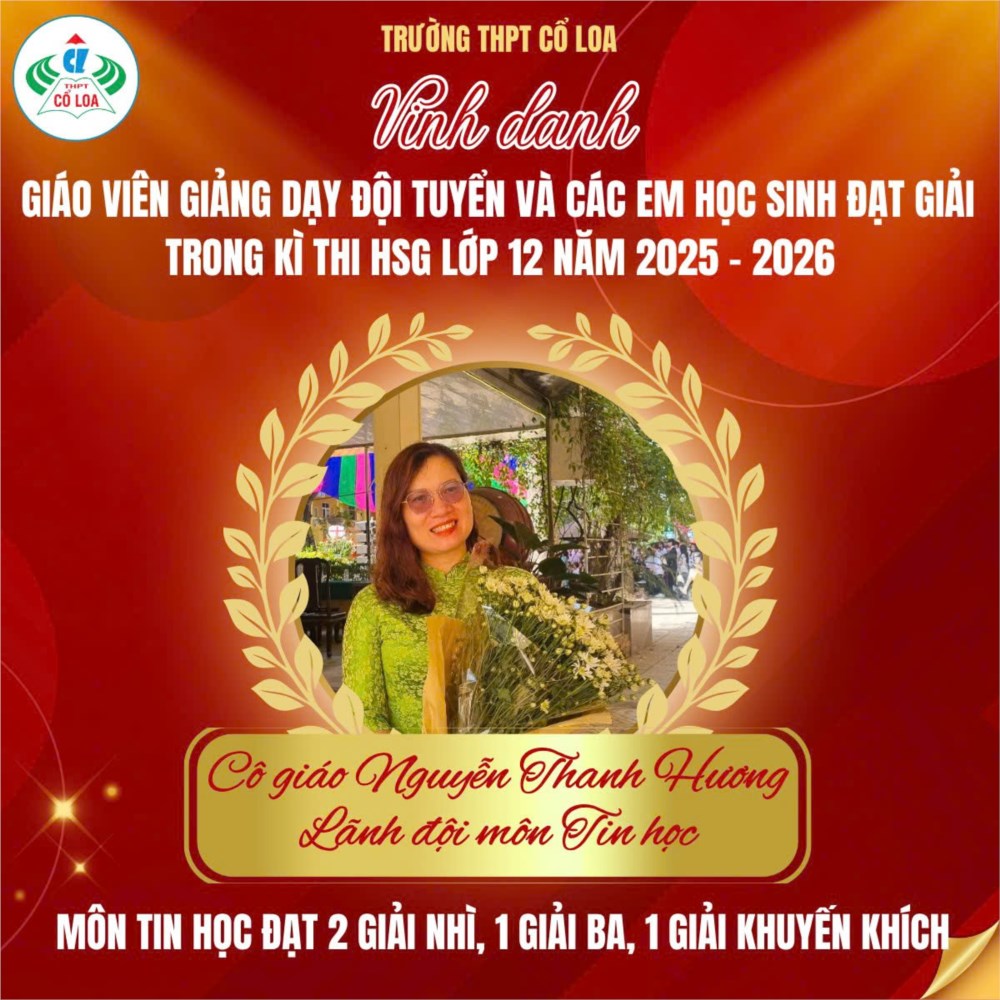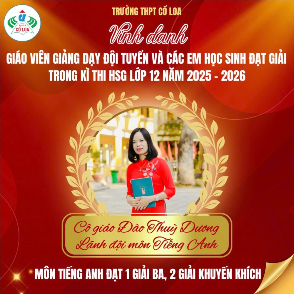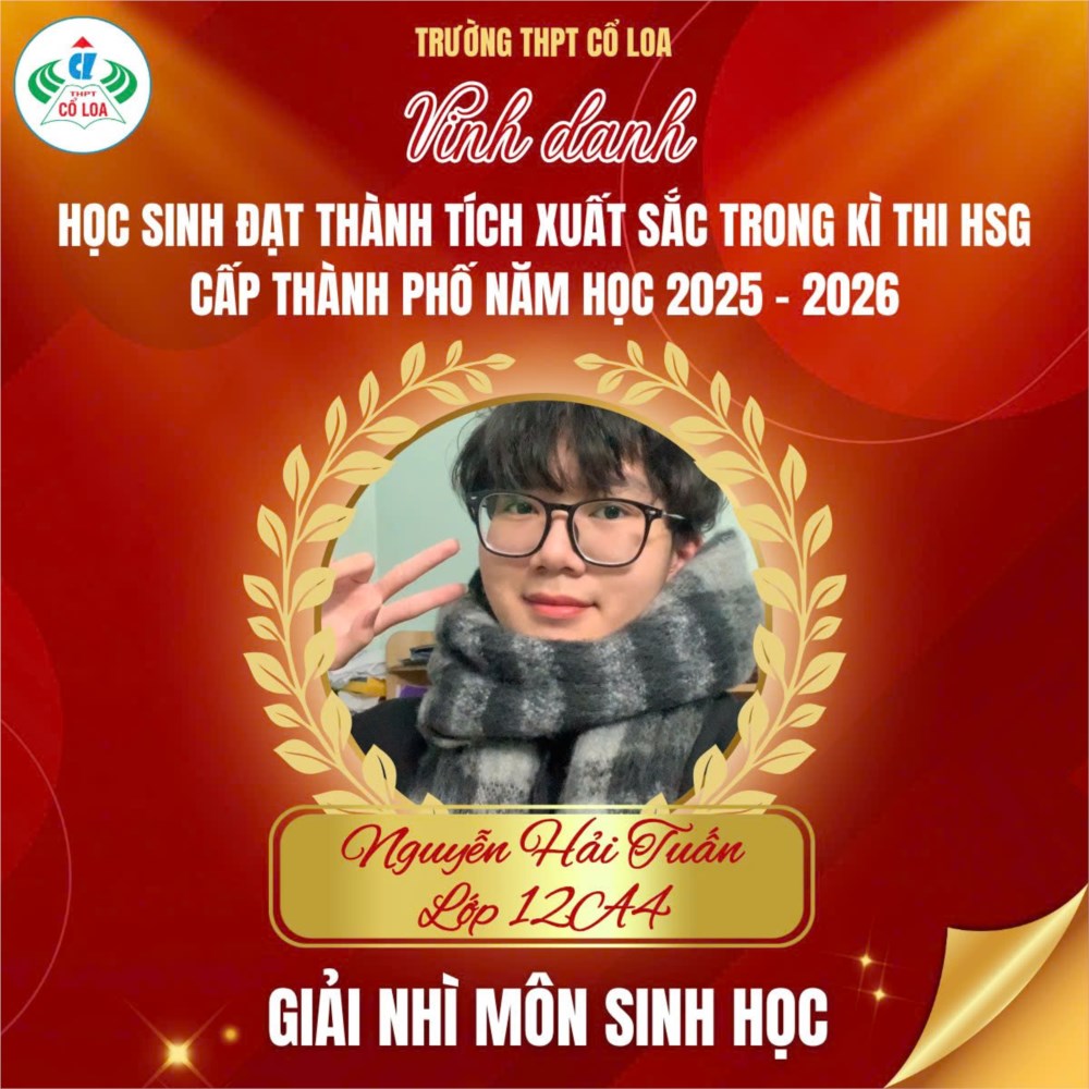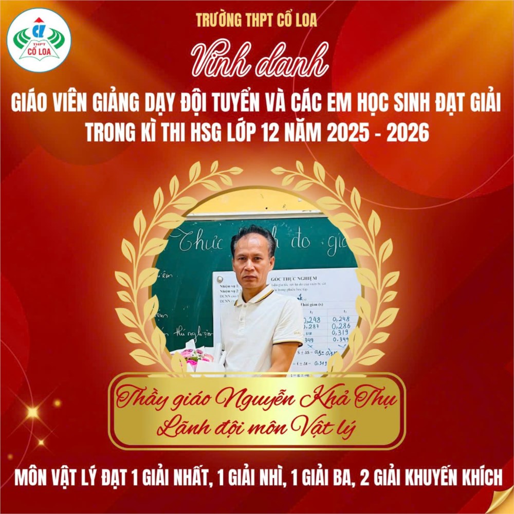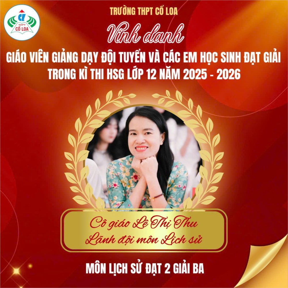 rong kỳ thi Học sinh giỏi cấp Thành phố năm học 2025-2026, Thầy và trò trường THPT Cổ Loa đã gặt hái được nhiều thành tích đáng tự hào, tiếp tục khẳng định vị thế của mình trong ngành giáo dục Thủ đô.