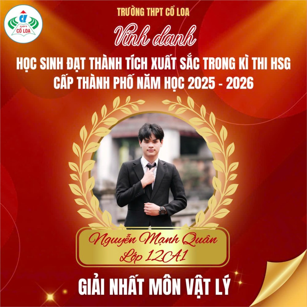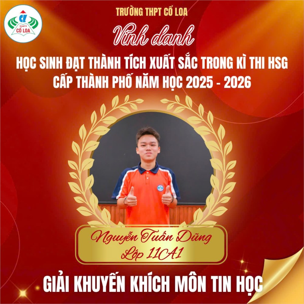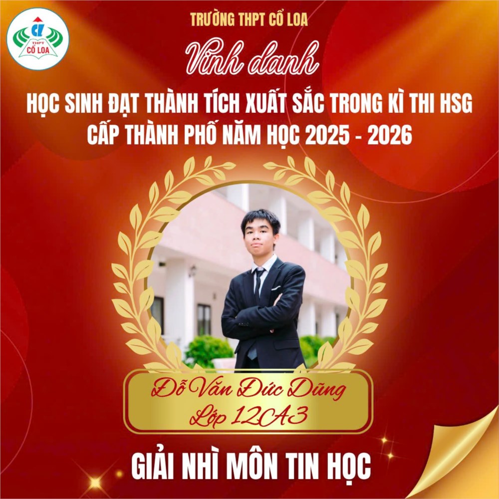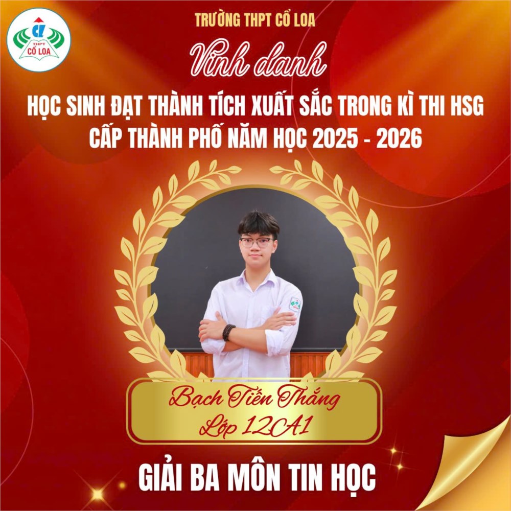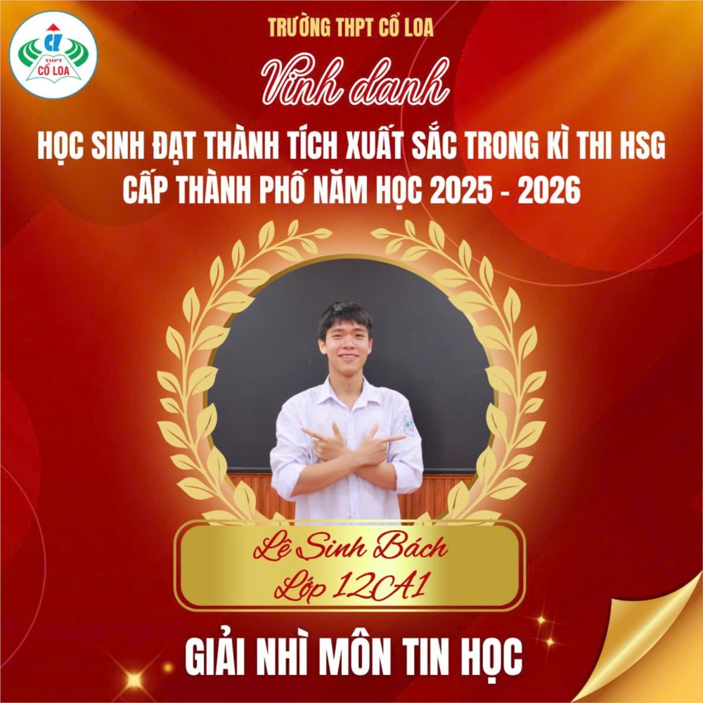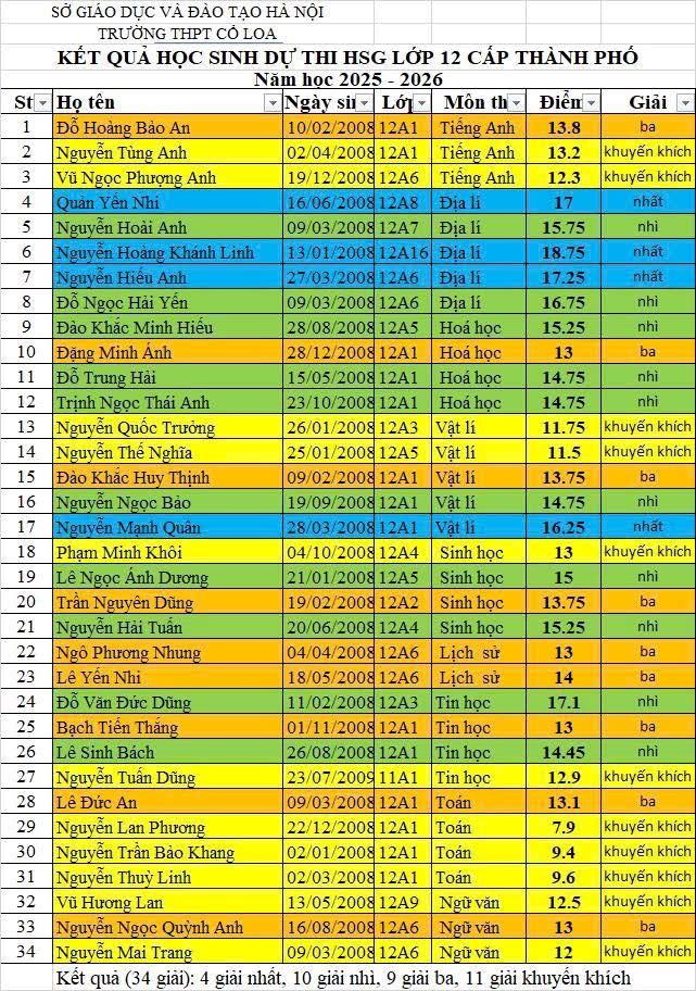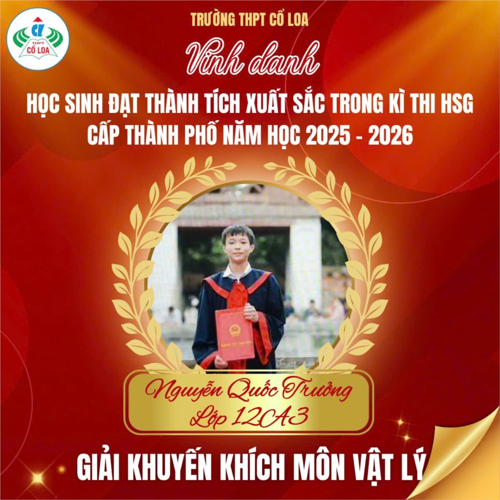 rong kỳ thi Học sinh giỏi cấp Thành phố năm học 2025-2026, Thầy và trò trường THPT Cổ Loa đã gặt hái được nhiều thành tích đáng tự hào, tiếp tục khẳng định vị thế của mình trong ngành giáo dục Thủ đô.