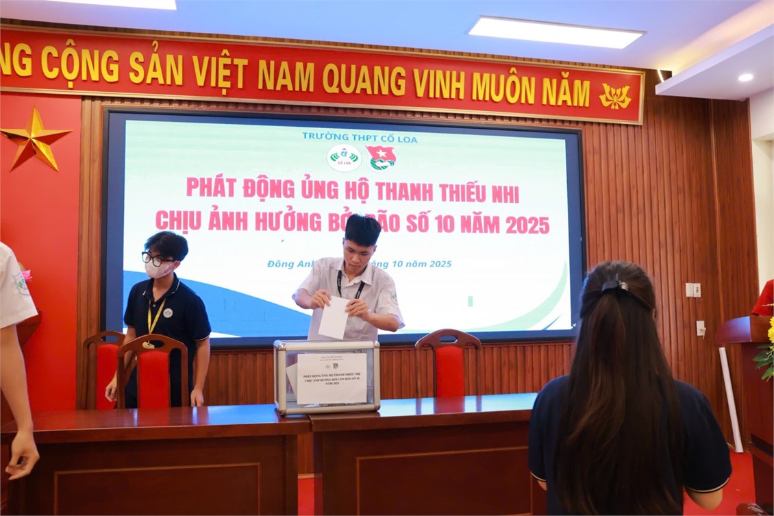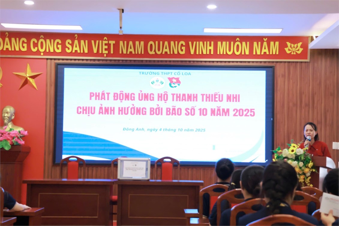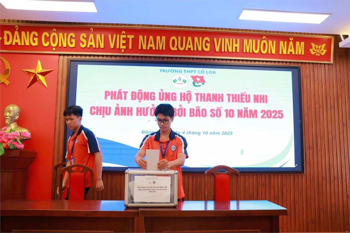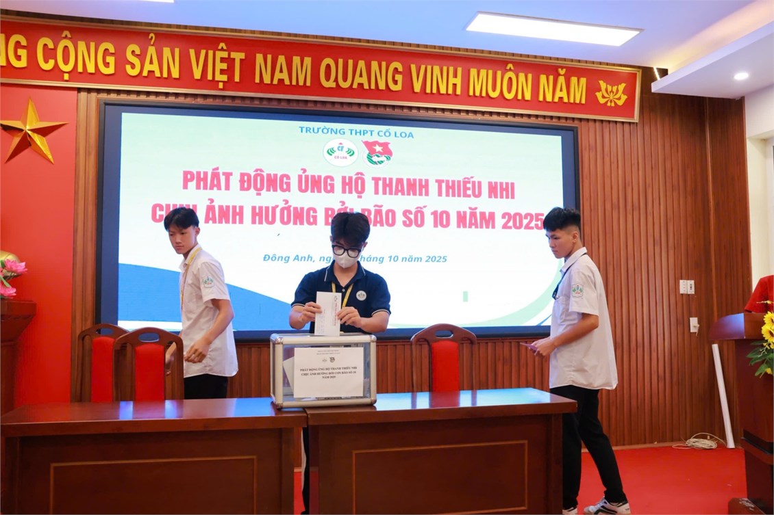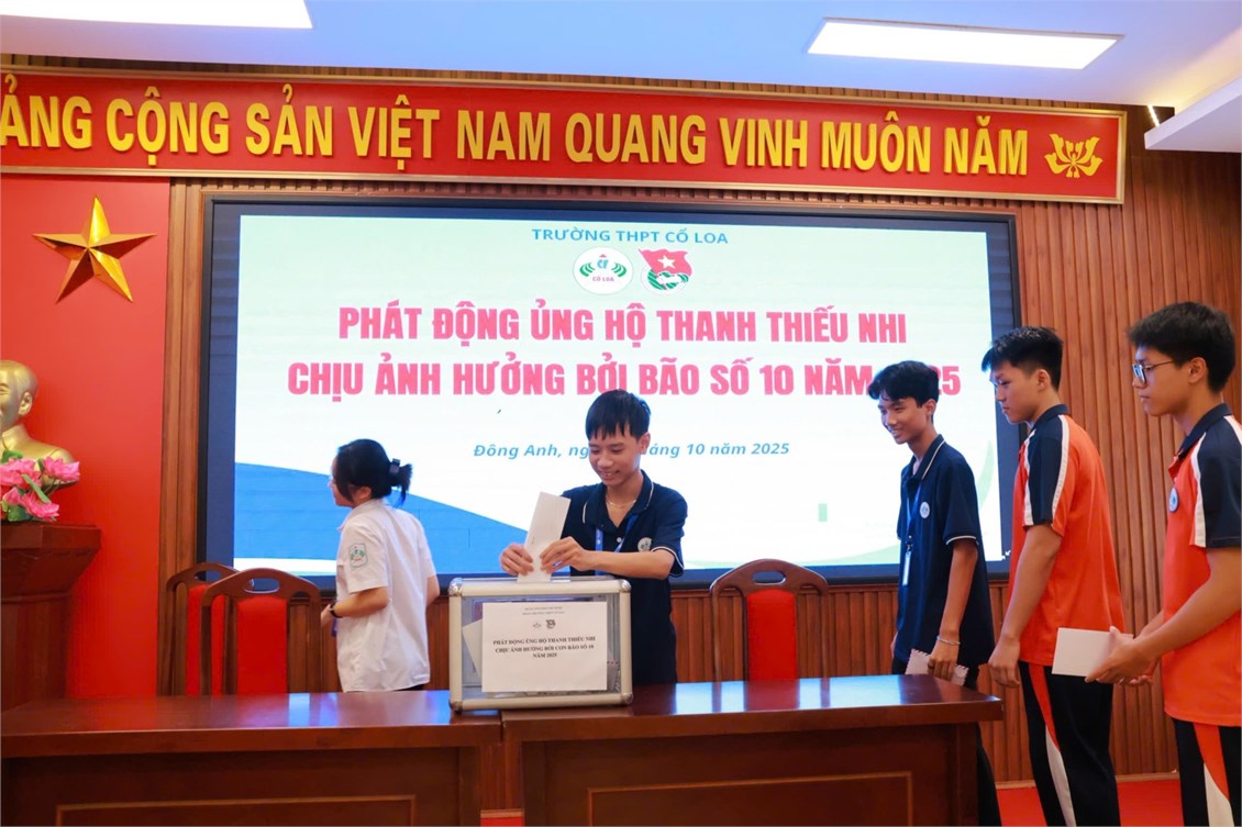 Thực hiện CV của Đoàn xã Đông Anh về việc ủng hộ thanh thiếu nhi chịu ảnh hưởng bởi cơn bão số 10 và thực hiện hoạt động thường niên ủng hộ quỹ vì người nghèo năm 2025. Nhằm phát huy truyền thống đoàn kết, "Lá lành đùm lá rách", vào ngày 4/10/2025, Đoàn trường THPT Cổ Loa đã phát động hoạt động "Ủng hộ thanh thiếu nhi chịu ảnh hưởng bởi bão số 10 & ủng hộ quỹ vì người nghèo năm 2025" tới toàn thể, GV, CBCNV và học sinh nhà trường.