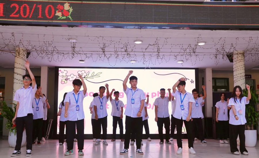 Trong chương trình, các bạn học sinh được tìm hiểu về lịch sử ngày 20/10, thưởng thức những tiết mục văn nghệ đặc sắc và giao lưu hỏi – đáp để hiểu rõ hơn ý nghĩa của ngày lễ đặc biệt này.