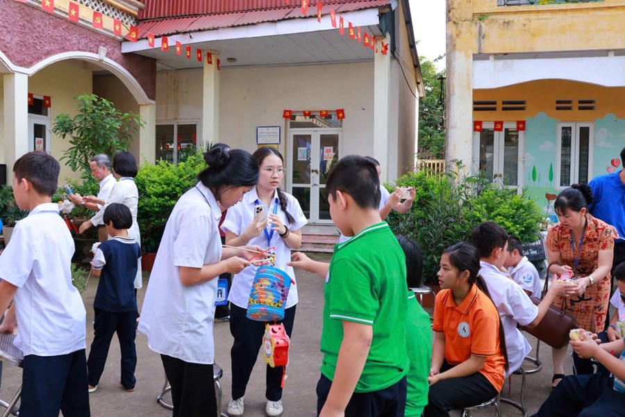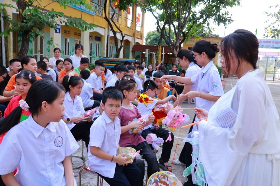 🎑 Tại chương trình, các bạn HS được xem màn biểu diễn múa Lân vô cùng đặc sắc, trực tiếp mang đến những tiết mục văn nghệ hóm hỉnh, đáng yêu. Đặc biệt, các bạn đã được nhận những món quà và những chiếc lồng đèn rực rỡ sắc màu, được các chi đoàn THPT Cổ Loa tự làm và quyên góp. Hi vọng chương trình "Trăng tròn ước mơ" sẽ giúp các bạn học sinh tại ngôi trường đặc biệt này có một mùa Trung Thu thật vui vẻ, hạnh phúc và đáng nhớ.